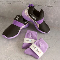 Matching kids sneaker and sock set, coordinated footwear for ages 2 to 7.